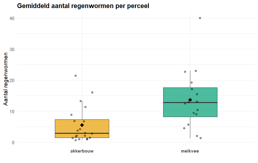 Een belangrijk eerste resultaat is dat we duidelijk zien dat er gemiddeld meer regenwormen zijn bij een hoger organisch stofgehalte. Dit is ook te verwachten, omdat regenwormen leven van organisch materiaal en dus profiteren van een bodem die rijk is aan deze voedingsbron.