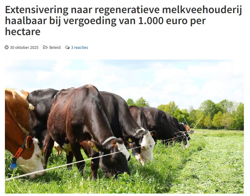- Lees ook op Melkvee.nl: Extensivering naar regeneratieve melkveehouderij haalbaar bij vergoeding van 1.000 euro per hectare | Melkvee.nl – Nieuws en kennis voor de melkveehouder